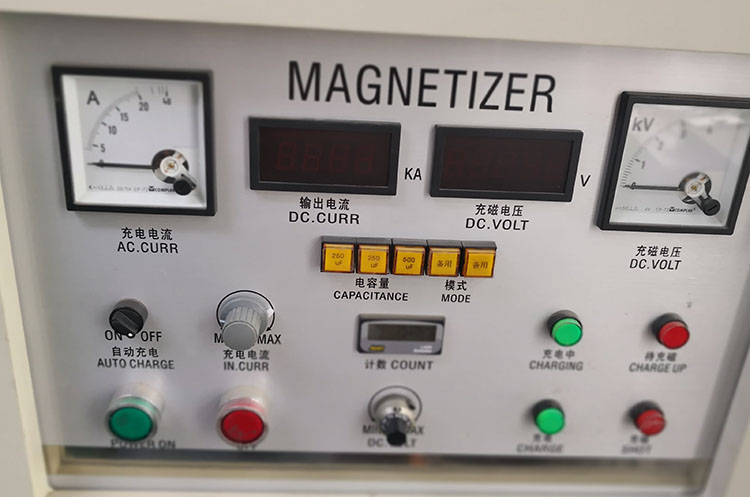 第一步,打開充磁機,把充磁電壓調到對應的檔上,選擇好充磁電容。
