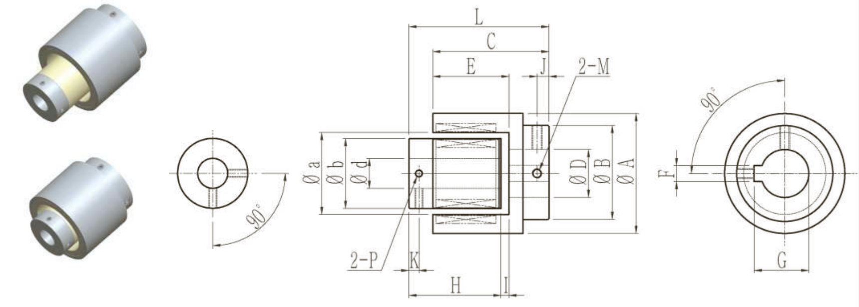 | 型號 | ΦA | ΦB | C | ΦD | Φa | Φb | Φd | E | F | G | H | I | J | K | L | M | P | 扭矩N.m |
